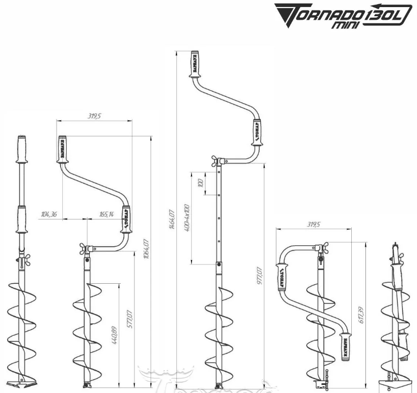 Ледобур ТОРНАДО-М2 МИНИ 130 мм, без чехла, левое вращение, транспортировочная 61 см, глубина бурения Тонар